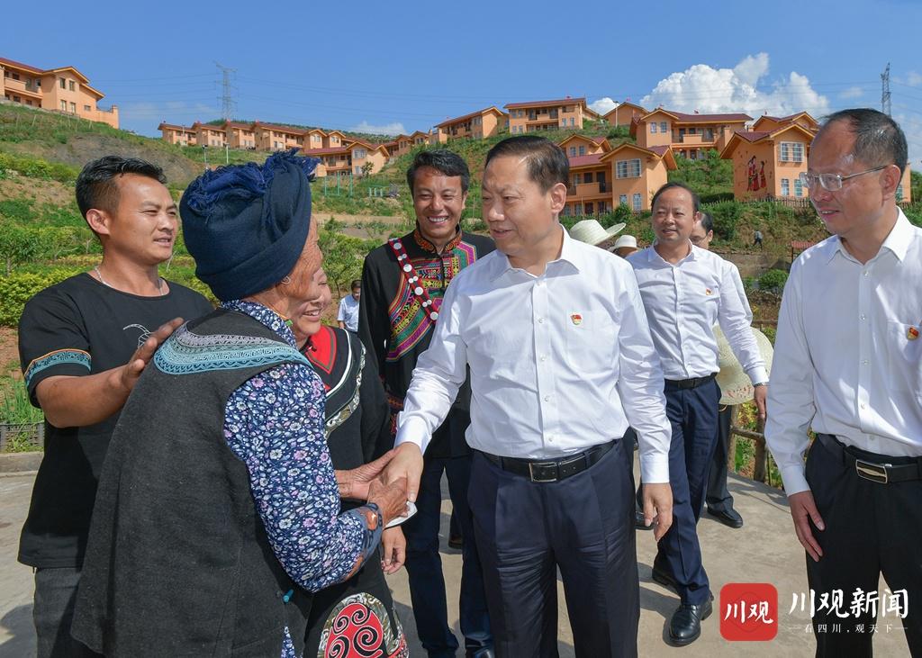 村内一幢幢错落有致的彝家新寨,居住着1200多名前些年从凉山自发搬迁而来的彝族群众。彭清华步行察看村容村貌,走进已脱贫群众吉克曲体家中,与镇村干部群众围坐一起,拉家常、问生计、聊发展,仔细盘算增收账。