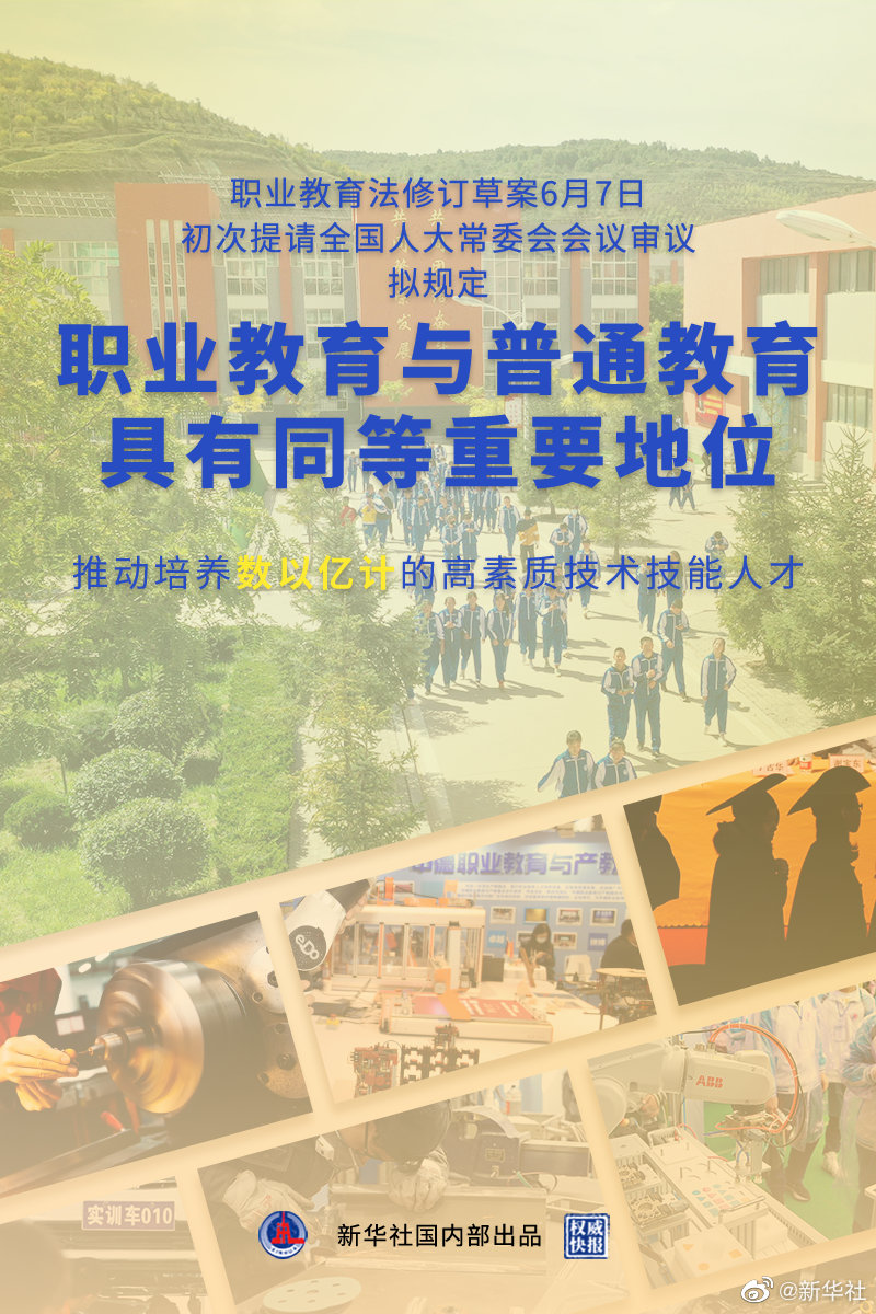 @新华社6月7日消息,职业教育法施行20多年来首次大修,发展职业教育事关我国经济社会发展全局。职业教育法修订草案当日初次提请全国人大常委会会议审议。