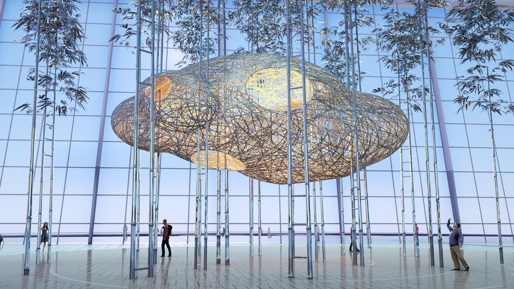 T1航站楼迎宾区艺术作品《巢》效果图。四川省机场集团供图