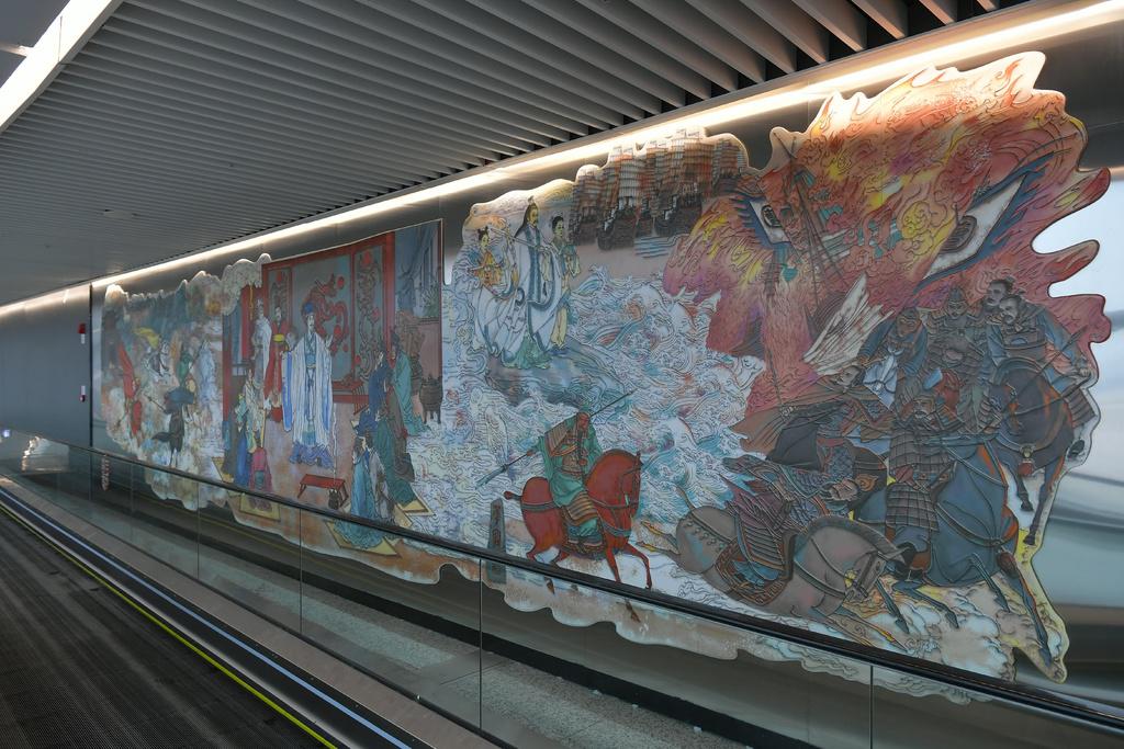 T1航站楼到达廊的艺术墙作品之一。郝飞摄