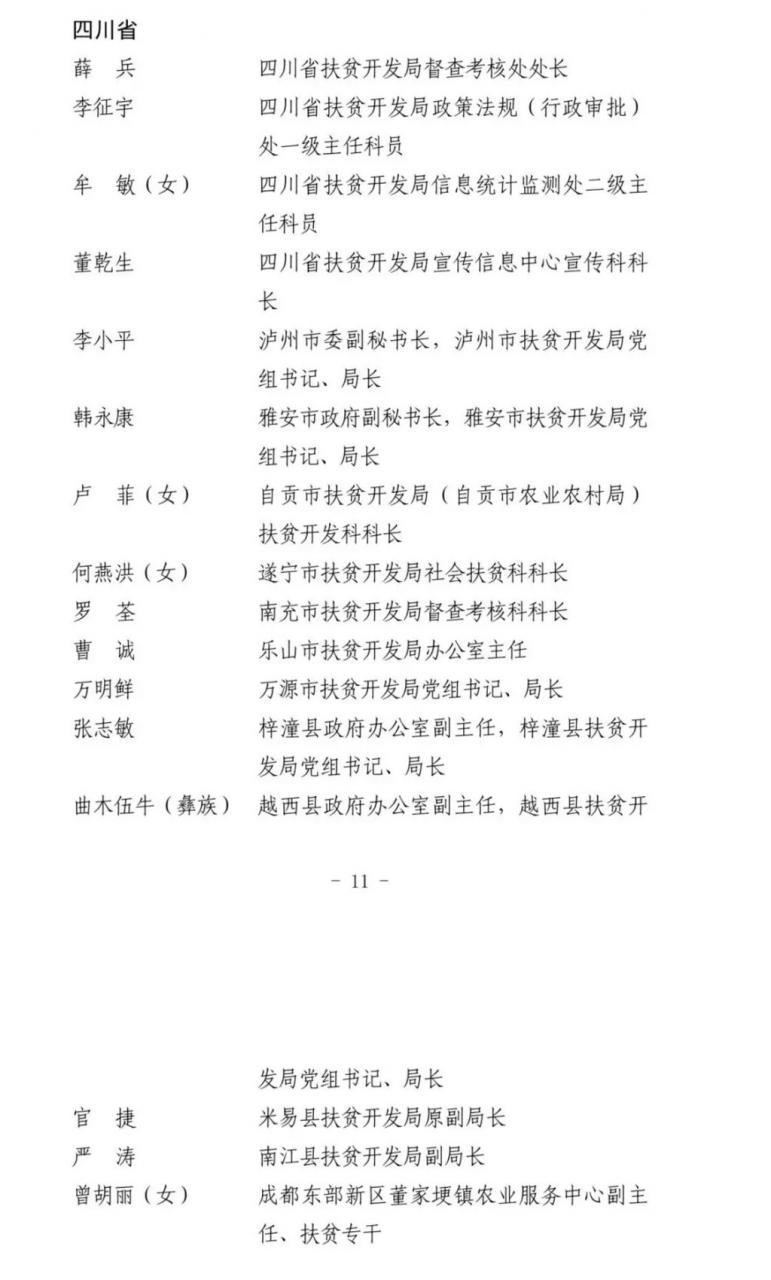 全国乡村振兴(扶贫)系统先进个人(四川省)