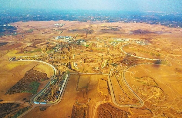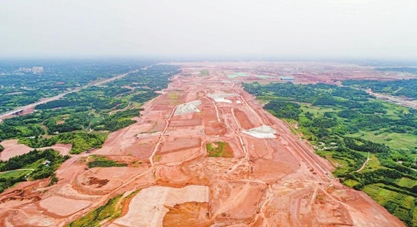 2018年5月30日,鸟瞰平整后待建的西一跑道。
