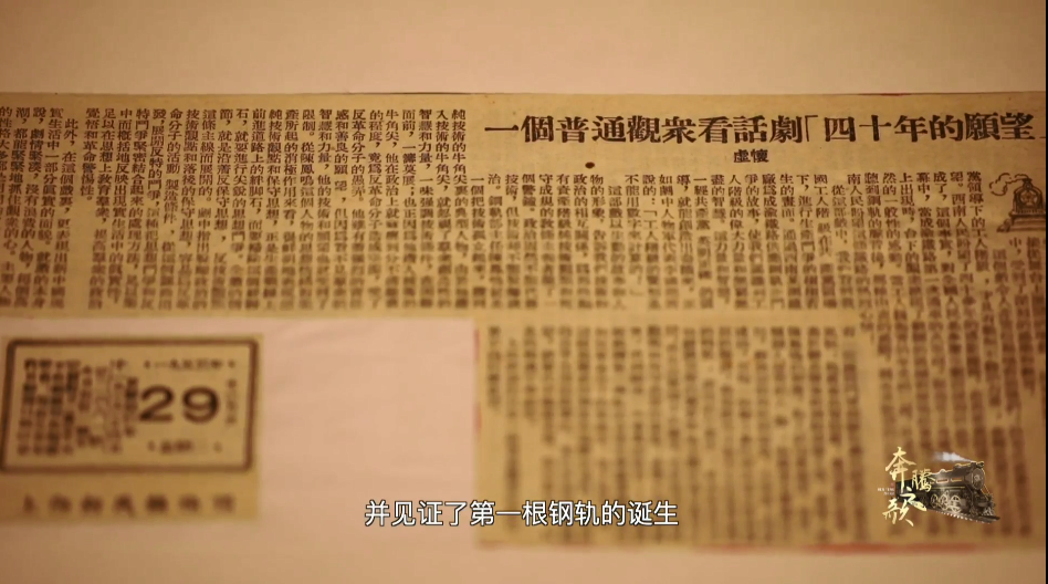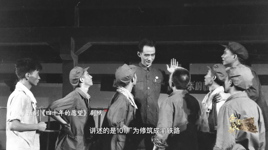 《四十年的愿望》讲述的是101厂为修筑成渝铁路,铸造出新中国第一根钢轨的故事。剧本的尾声有这样一个情节,当成渝铁路全线通车,四川人民40年的愿望得以实现时,这条新中国成立后由中国人自己设计、自己制造的铁路,要在舞台上闪亮登场。