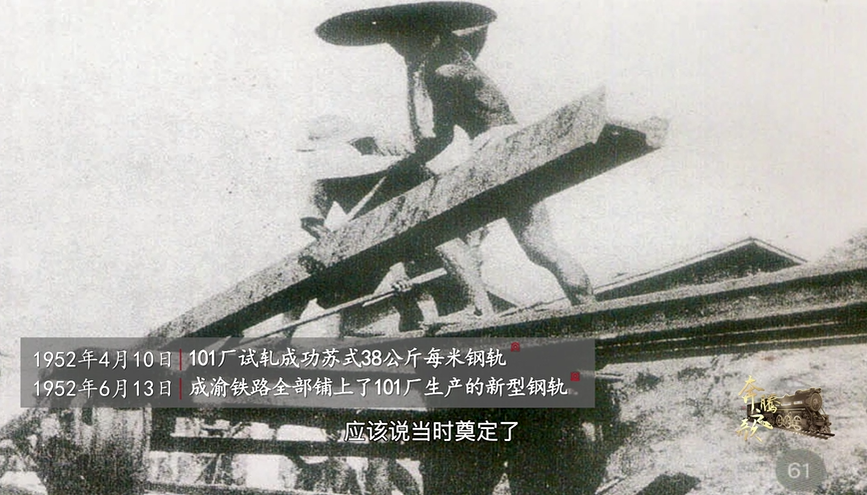 钢轨、枕木、人力,万事俱备,1950年8月1日,工人们在重庆大渡口车站铺下了成渝线上的第一对钢轨。接着,钢轨从大渡口向九龙坡延伸,目的是接通长江边上的九龙坡码头,以便为101厂起卸和运输鞍山钢锭。