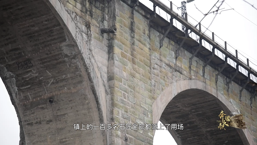 成渝铁路沿线料石多,群众中石匠师傅也多,所以沿线桥涵大多采用大跨度石拱桥或者联拱石桥,不仅节省了水泥,还美观耐用。老居民黄绪友回忆说,修建王二溪大桥,镇上的一百多名石匠全部都派上了用场,石料则从河对岸的青家岩水运而来。全长316米的王二溪大桥是国内最长的铁路石拱桥,而像这样的石拱桥,在成渝铁路全线总共有827座。