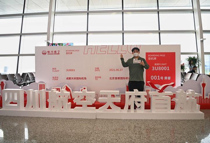 6月27日,在成都天府国际机场,四川航空公司飞往北京首都国际机场的3U8001航班即将起飞,这是该机场投入使用后的首个航班。新华社记者 江宏景 摄