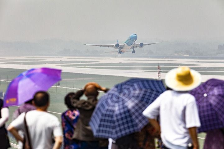 6月27日,四川航空公司飞往北京首都国际机场的3U8001航班在成都天府国际机场起飞,这是该机场投入使用后的首个航班。新华社记者 江宏景 摄