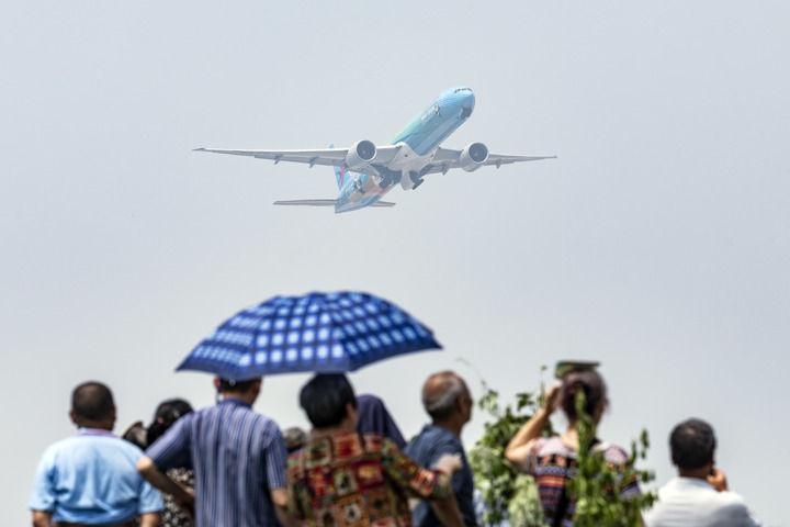 6月27日,中国国际航空公司飞往北京首都国际机场的CA4195航班在成都天府国际机场起飞。新华社记者 沈伯韩 摄