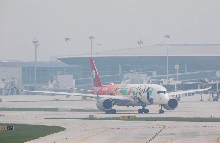 6月27日,四川航空公司飞往广州白云国际机场的3U8101航班在成都天府国际机场准备起飞。新华社记者 沈伯韩 摄