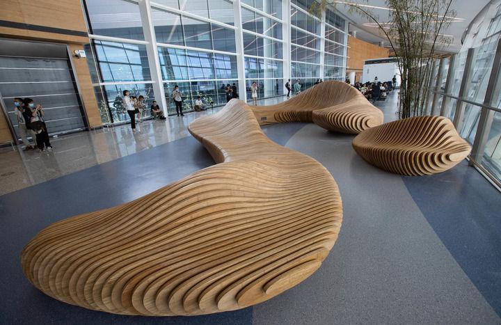 这是成都天府国际机场T1航站楼国际出发候机区的艺术装置(6月19日摄)。新华社记者 江宏景 摄