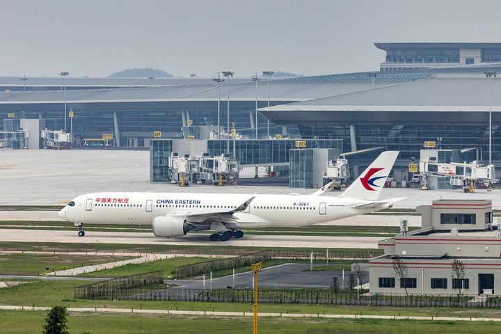 6月27日,中国东方航空公司飞往北京大兴国际机场的MU9697航班在成都天府国际机场准备起飞。新华社记者 沈伯韩 摄