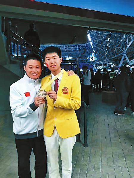 赵脯菠(右)和师傅周树春在领奖后。