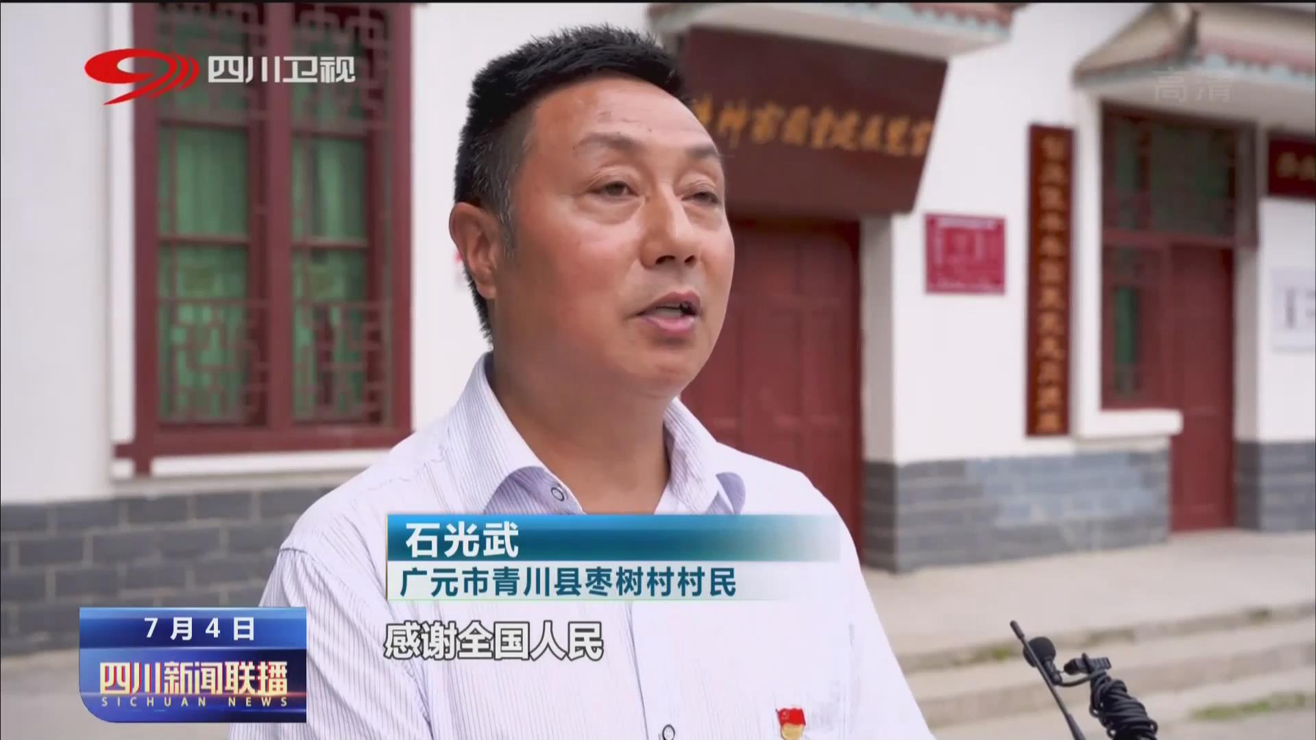 广元市青川县枣树村 村民 石光武:我们感谢党和政府。感谢全国人民。在512地震过后,在一片废墟中走出来,我们现在修起了漂亮的新房。我们要把我们的日子过得更加美好。