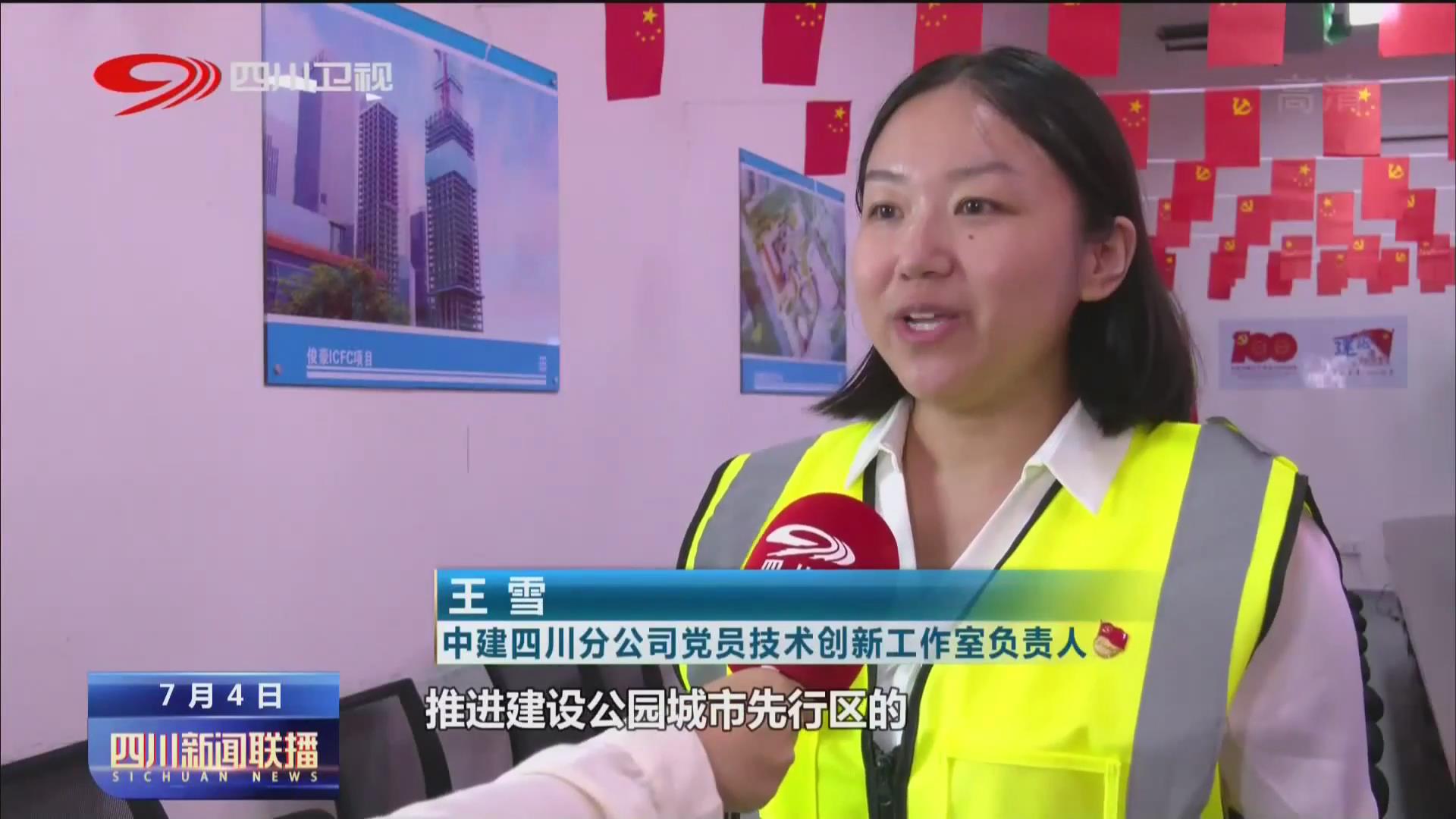 中建四川分公司党员技术创新工作室负责人 王雪:目前,我们成立了推进建设公园城市先行区的“生态环保党员技术创新工作室”,加强民生社会领域科技创新,全力推进天府国际生物城污水处理厂建设。