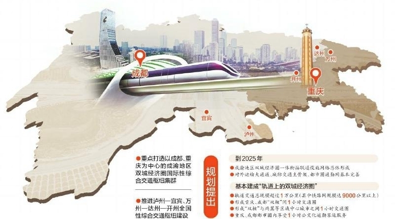 到2025年,成渝地区基本建成“轨道上的双城经济圈”出行实现3个“1小时”通达