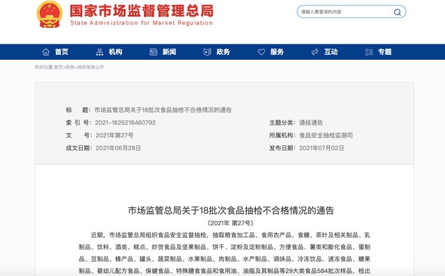 快看家里有没有!18批次食品抽检不合格,涉及天猫、京东等平台
