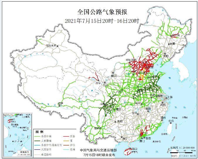 根据中国气象局与交通运输部2021年07月15日联合发布的全国主要公路气象预报,7月15日晚上到16日白天,四川受大到暴雨影响的主要路段有: