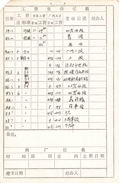 我记得特别清楚,每年1到6月底,车间里的叔叔阿姨们干劲儿都特别大,抢着加班。因为每年的“调资”时间在7月1日,大家伙儿都争着能在下一年调半级。