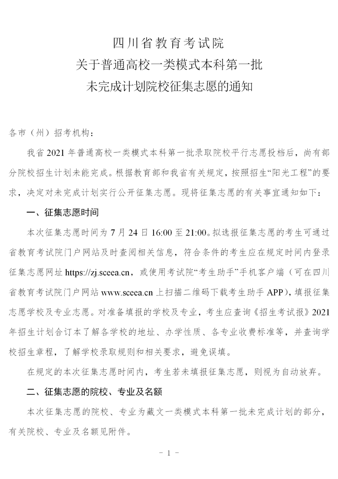 今晚21点截止!普通高校一类模式本科第一批未完成计划征集志愿来啦