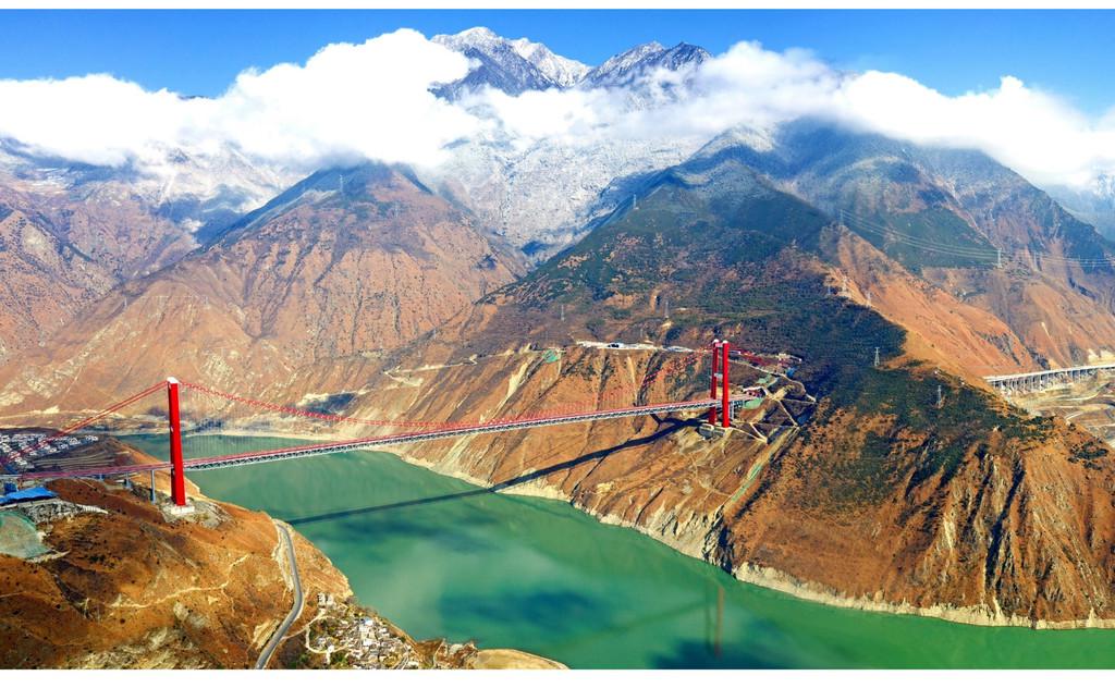 该桥于2018年建成通车,是一座建设在高海拔、高地震烈度带、复杂风场及温度场环境下的超大跨径钢桁梁悬索桥,全桥长1411米,主跨1100米,被誉为“川藏第一桥”。