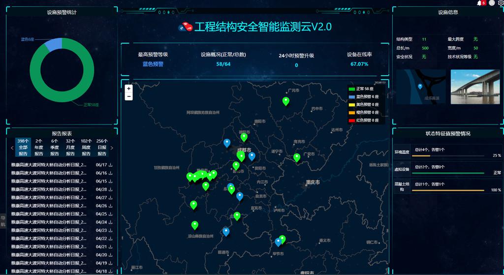 比如,针对地灾、水毁等风险突出的桥梁,根据安全风险辨识结果,按照轻量化原则,进行一桥一方案的精准靶向监测,雅西高速瓦厂坪大桥就是一例;针对已发生重大险情的桥梁,快速部署应急监测系统,如雅西高速姚河坝大桥突遭山体崩塌导致半幅损毁,48小时内部署了监测预警系统,既为抢通保通和恢复重建提供技术支撑,也有效保障人员车辆安全。