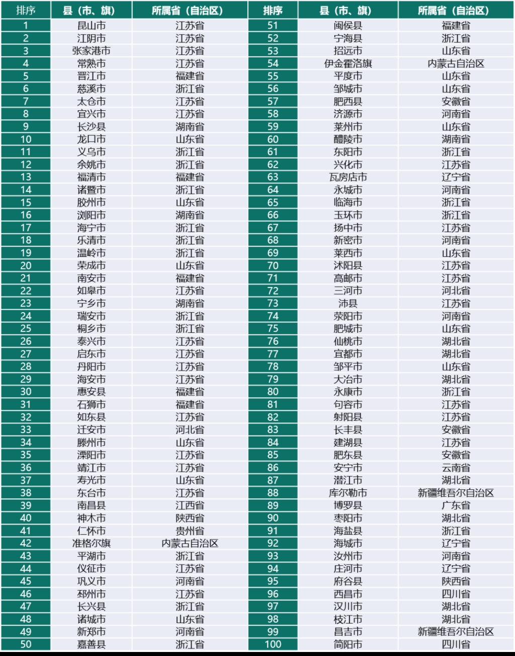 2021年赛迪百强县。(数据来源:赛迪顾问)