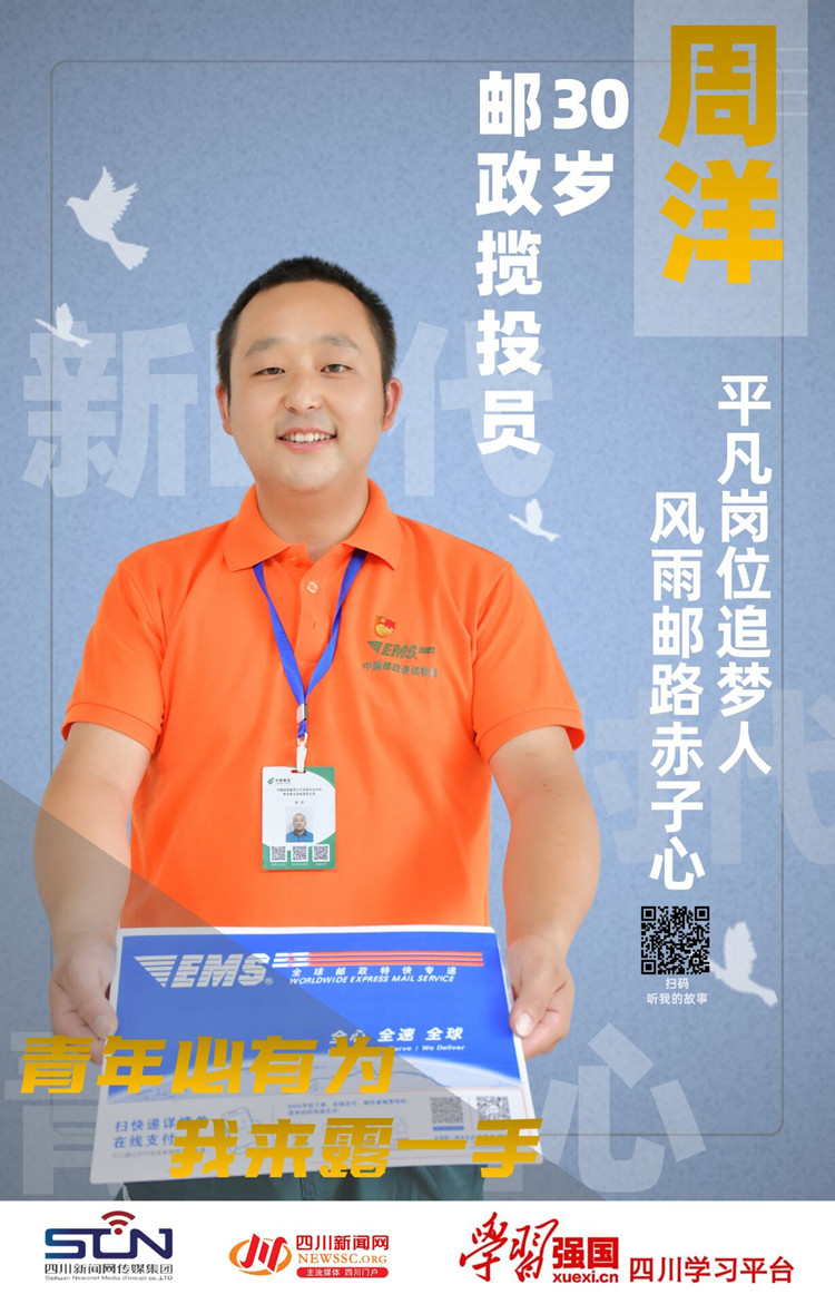 今年30岁的周洋,是中国邮政集团有限公司成都市金牛区分公司内化成营业部的一名揽投处理人员,他从事邮政揽投工作已经10年了,从未迟到过一次,经他处理的邮件超过80万件,投递准确率几乎达到100%,没有发生过一起客户投诉。因工作出色,周洋先后获评“四川省劳动模范”、“四川省五一劳动奖章”获得者、“成都工匠”、“第五届全国邮政特有职业技能竞赛”个人优秀奖、“四川省邮政系统技术能手”……