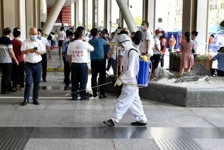 时间:2021-08-10 09:29:26 来源:华西都市报工作人员对公共区域进行消毒。
