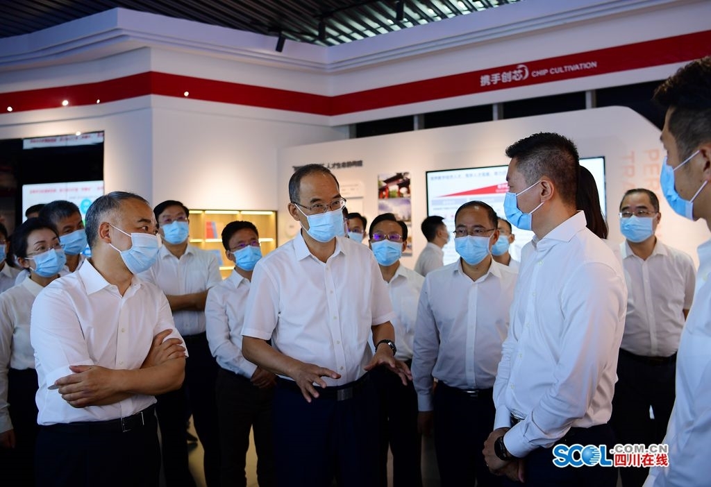 8月19日,黄强在四川天府新区华为成都鲲鹏生态基地调研鲲鹏计算机产业建设发展情况。