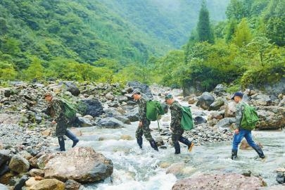 时间:2021-08-27 15:14:21 来源:四川日报8月25日,大熊猫国家公园四川片区大邑区域,大蒜坪管护站的巡护队员在渡河。