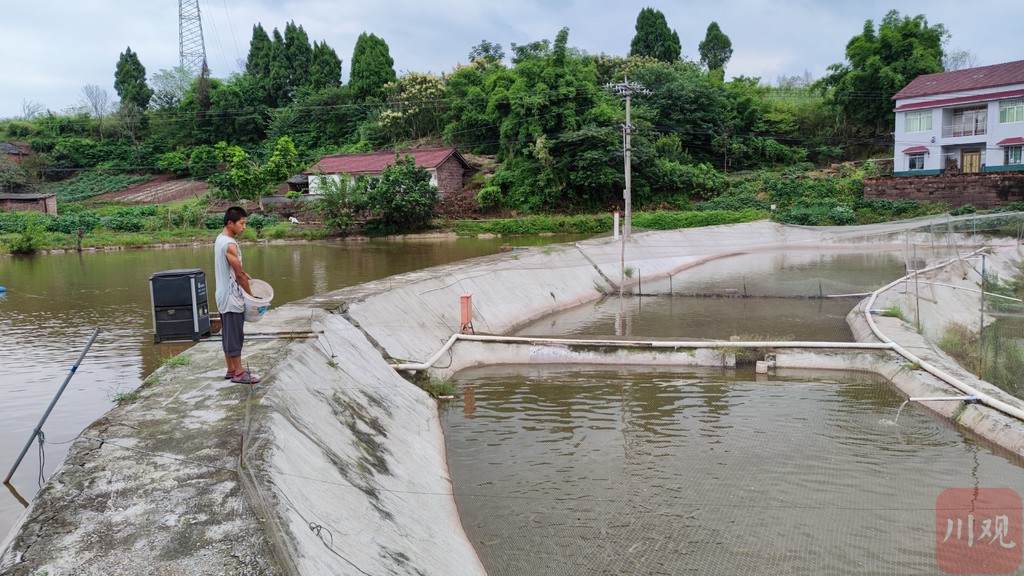 9月18日,内江市市中区凌家镇水口村,被村民称为“陈场长”的陈利伟沿着水塘的一边为水中养殖的白乌鱼投食。“这段时间正是上市的时候了,要喂大颗粒的料,白乌鱼才吃得饱。”陈利伟边走边说。