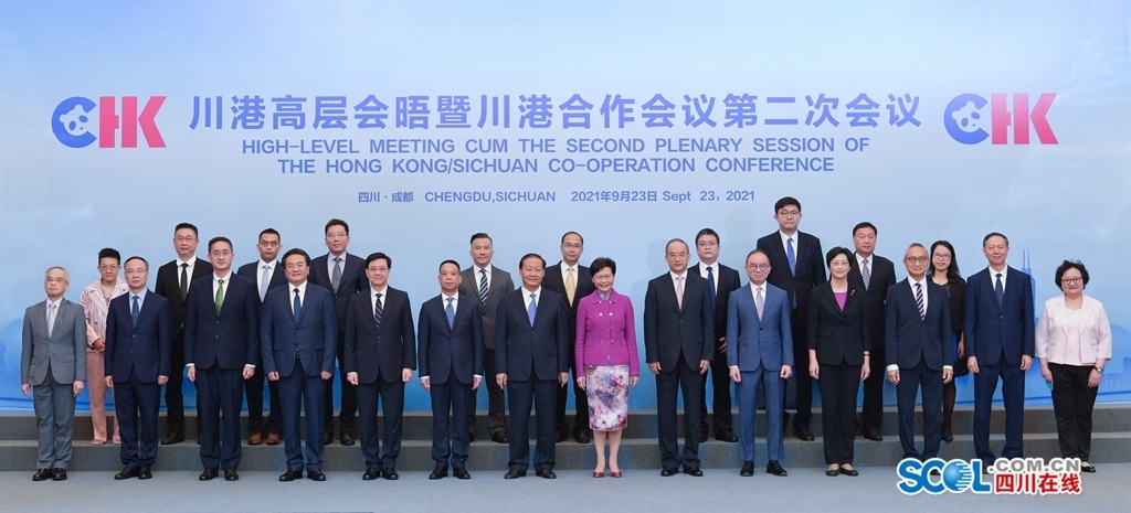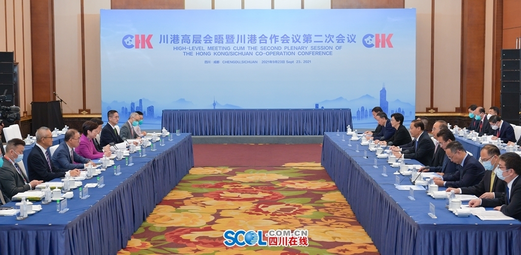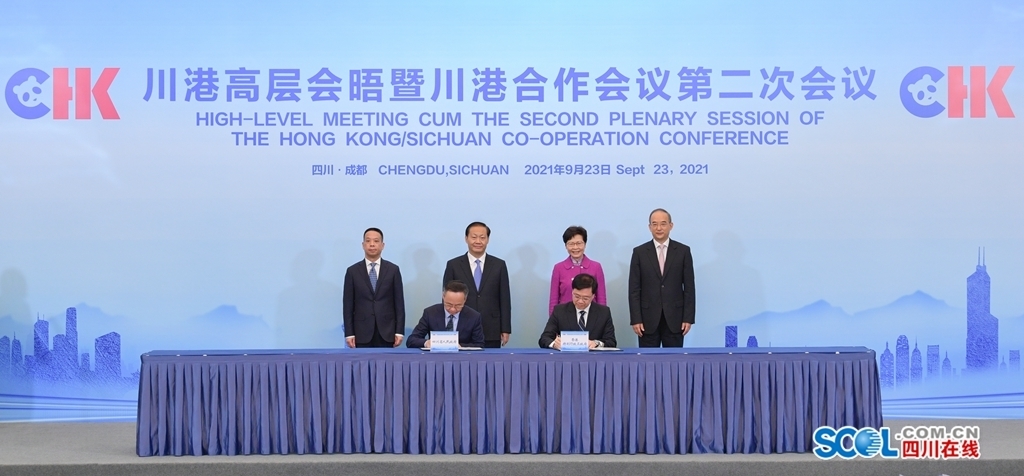 9月23日上午,川港高层会晤暨川港合作会议第二次会议在成都召开,四川省人民政府与香港特别行政区政府签署《川港高层会晤暨川港合作会议第二次会议备忘录》和有关重点领域合作协议。省委书记彭清华、香港特别行政区行政长官林郑月娥、国务院港澳办副主任黄柳权出席会议并致辞,共同见证备忘录和协议签署。省委副书记、省长黄强主持会议,省委副书记邓小刚出席。
