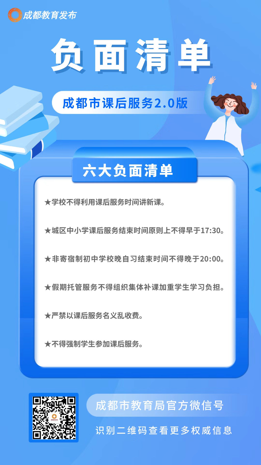时间:2021-10-09 14:43:48 来源:川观新闻江粉儿从成都市教育局获悉,近日,成都市教育局、市发改委、市财政局和市人社局联合印发《关于深化中小学课后服务提高课后服务水平的通知》,明确提出,全市义务教育阶段学校要进一步提高课后服务水平,全面实施“托管+拓展”课后服务模式,更好地满足学生个性化发展需求,实现义务教育学校全覆盖、有需求的学生全覆盖,促进学生全面健康成长。成都市中小学课后服务2.0版全面开启!