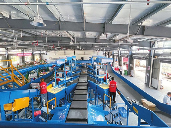 江安县农村物流中心全自动分拣中心。