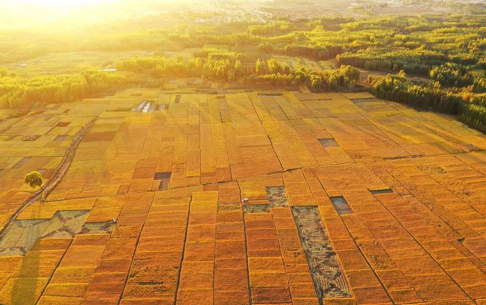 △2020年10月18日在河北滦州市古城街道蒋庄村拍摄的稻田(无人机照片)。新华社记者 牟宇 摄