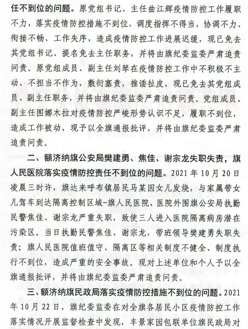 疫情防控不力!内蒙古额济纳旗卫健委、公安、民政多人被问责