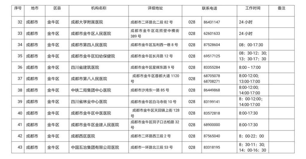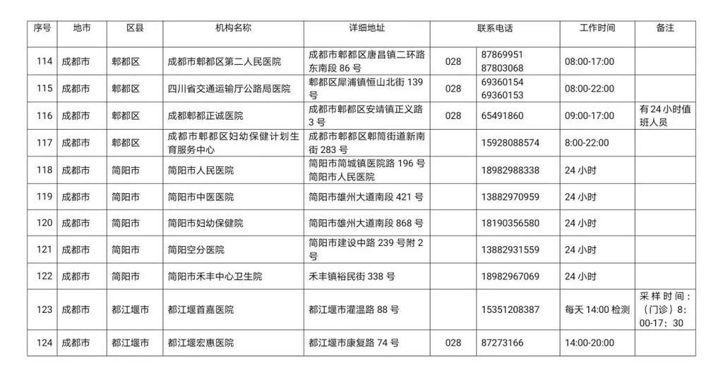 为进一步做好我省疫情防控工作,方便群众及时就近进行新冠病毒核酸检测,四川疾控现将四川省新冠病毒核酸检测医疗机构名单公布如下: