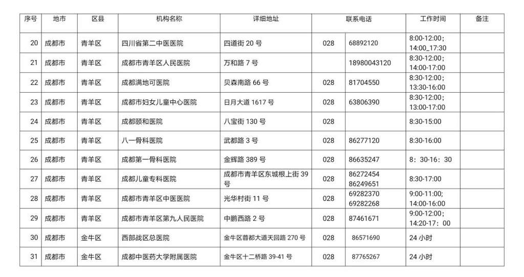 最新!四川省新冠病毒核酸检测医疗机构名单公布!