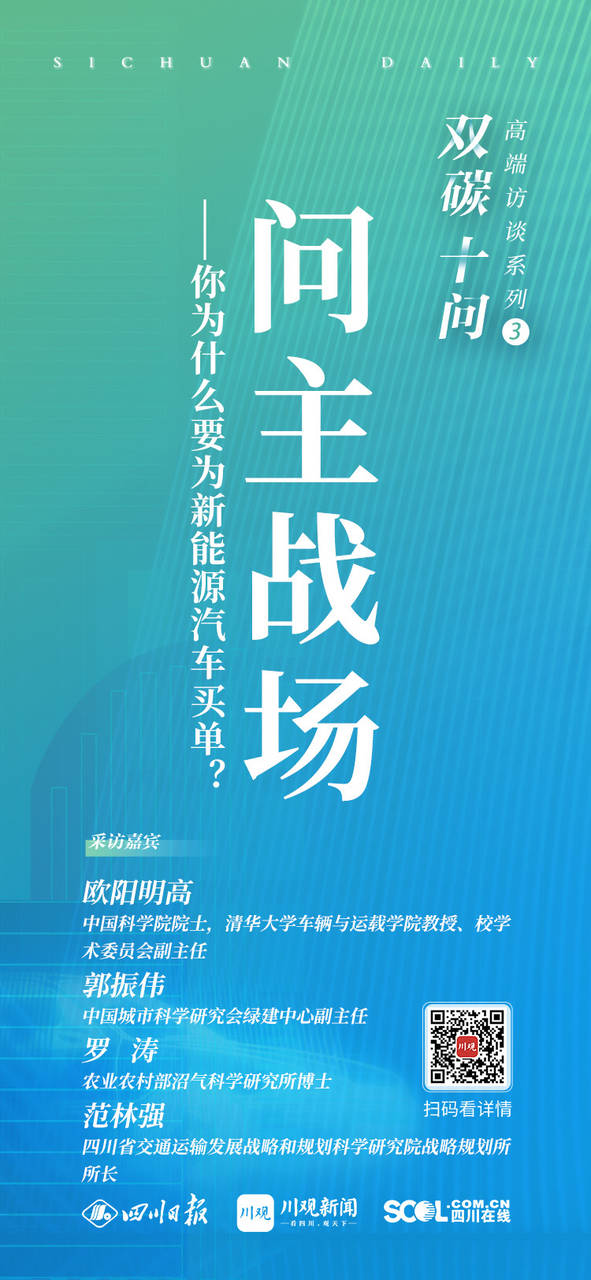 范林强:全国交通运输领域碳排放约占全社会碳排放总量的12%,低于能源和工业排第3位。四川省交通运输碳排放占全省碳排放总量的17.5%,仅次于工业居第2位。