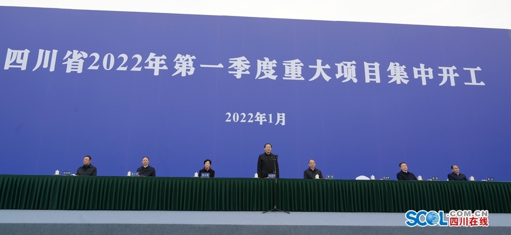 10时45分许,彭清华宣布:四川省2022年第一季度重大项目集中开工。此次集中开工10亿元以上重大项目100个、总投资2322亿元,涉及基础设施、现代产业、民生及社会事业等领域。