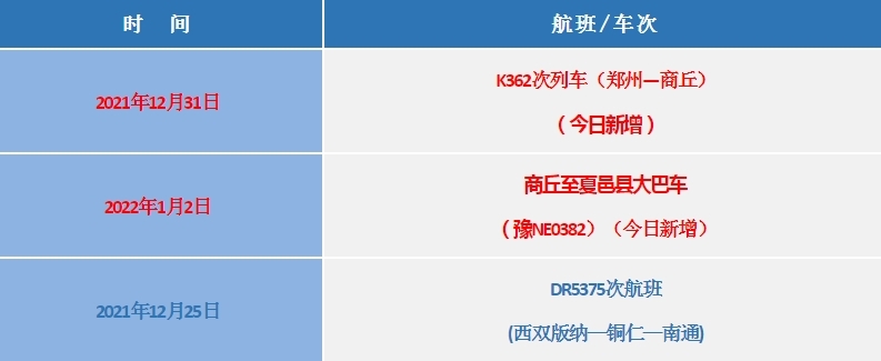 搭乘过以下交通工具的来(返)川人员,第一时间主动向社区(村)、单位或入住酒店报备旅居史,配合做好各项疫情防控工作。