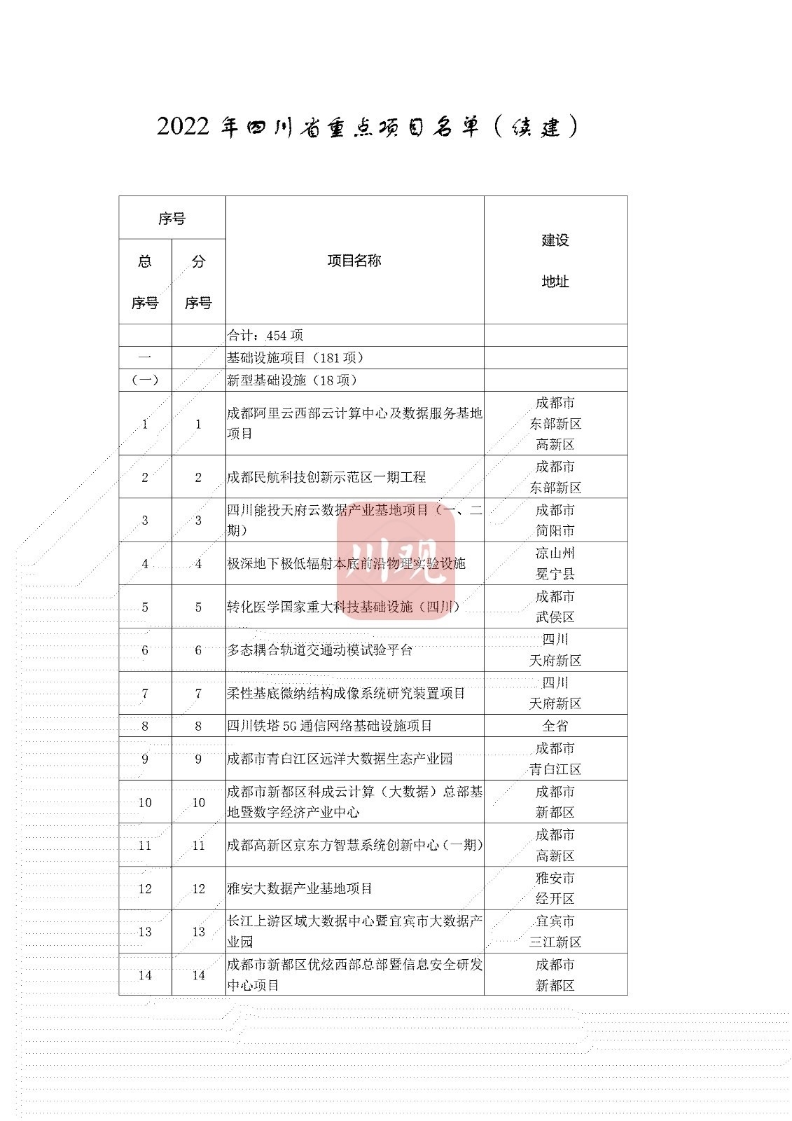 时间:2022-01-12 10:06:01 来源:四川在线日前,四川公布了《2022年四川省重点项目名单》,名单共列项目700个。其中,续建项目454个,计划2022年开工项目246个。