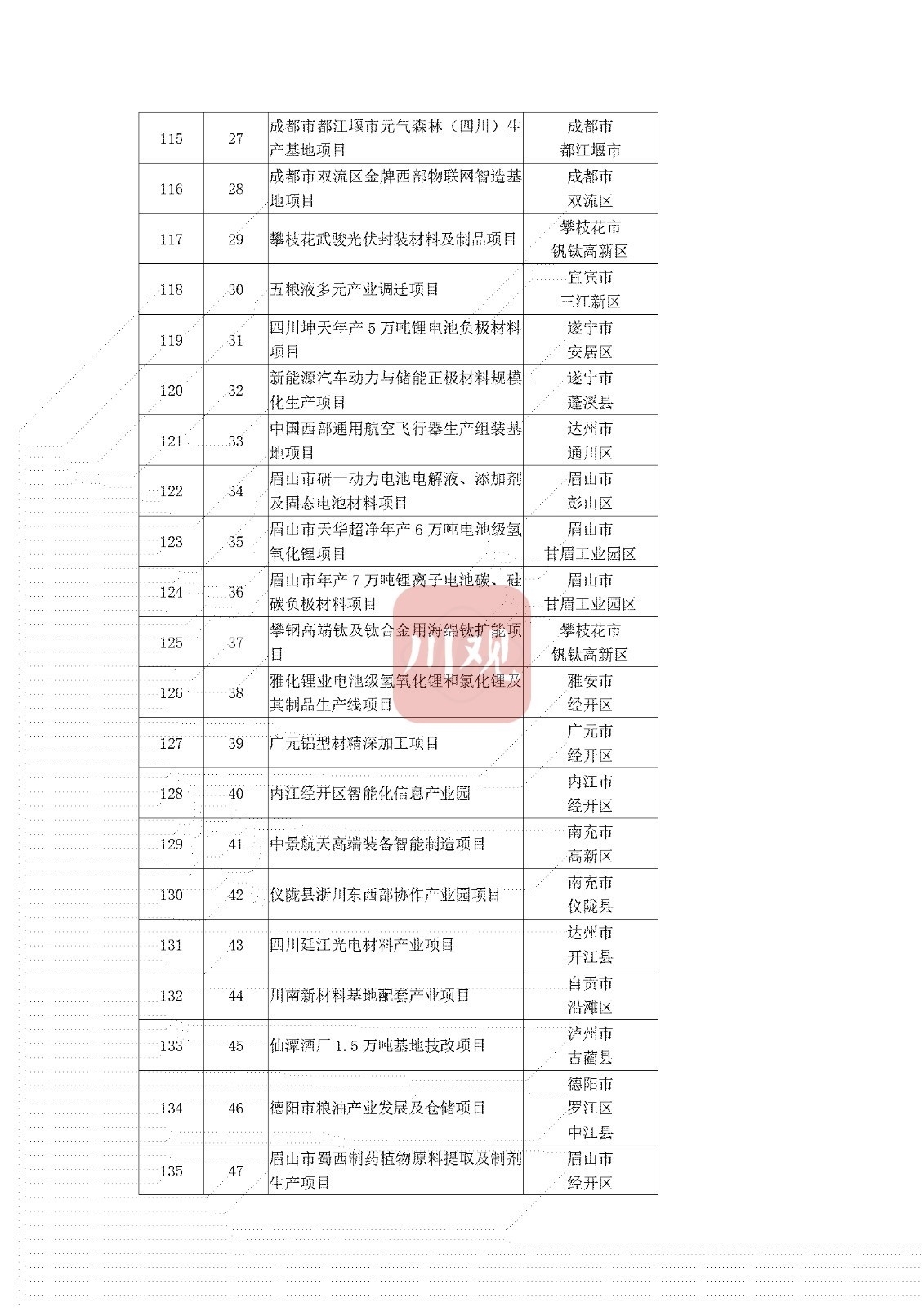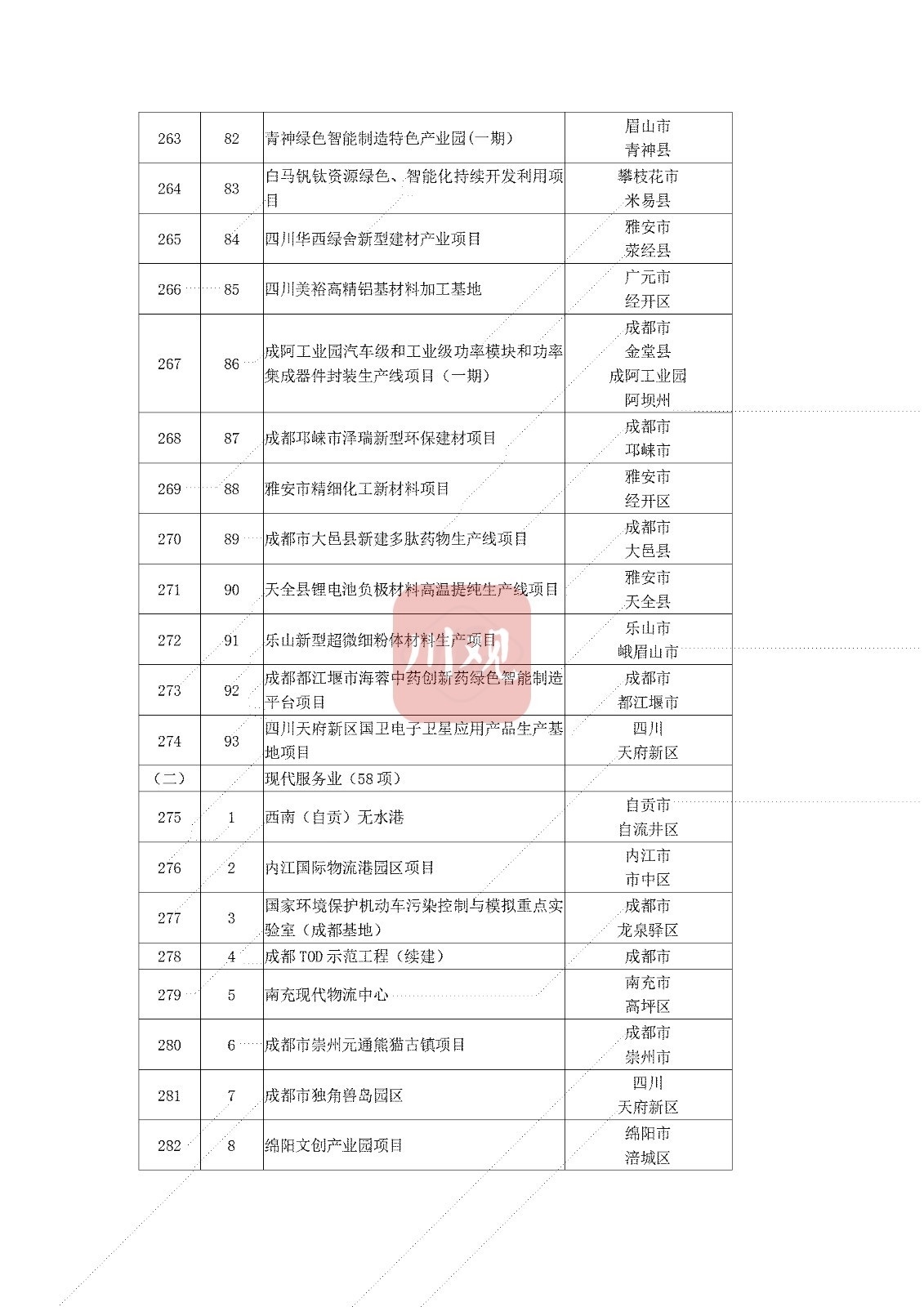 其中,产业项目数量位居最多,为327个,包括恒力(泸州)功能性纤维新材料项目、眉山市杉杉年产20万吨锂离子电池负极材料项目等。基础设施项目位居次席,达269个,重点涵盖G4216线仁寿至攀枝花高速公路、亭子口灌区一期工程等。