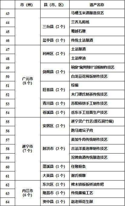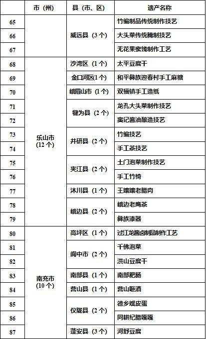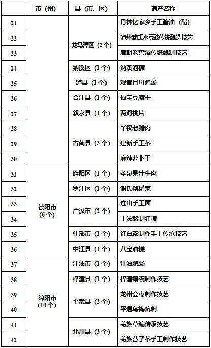 1月11日,四川省农业农村厅发布了四川省第二批农村生产生活遗产名录,一共145个项目入选。其中,内江6个项目入选。分别为:椑木镇板板桥油炸粑、传统藤编工艺、赵老师花生酥、竹编制品传统制作技艺、大头菜传统腌制技艺、无花果蜜饯制作工艺。