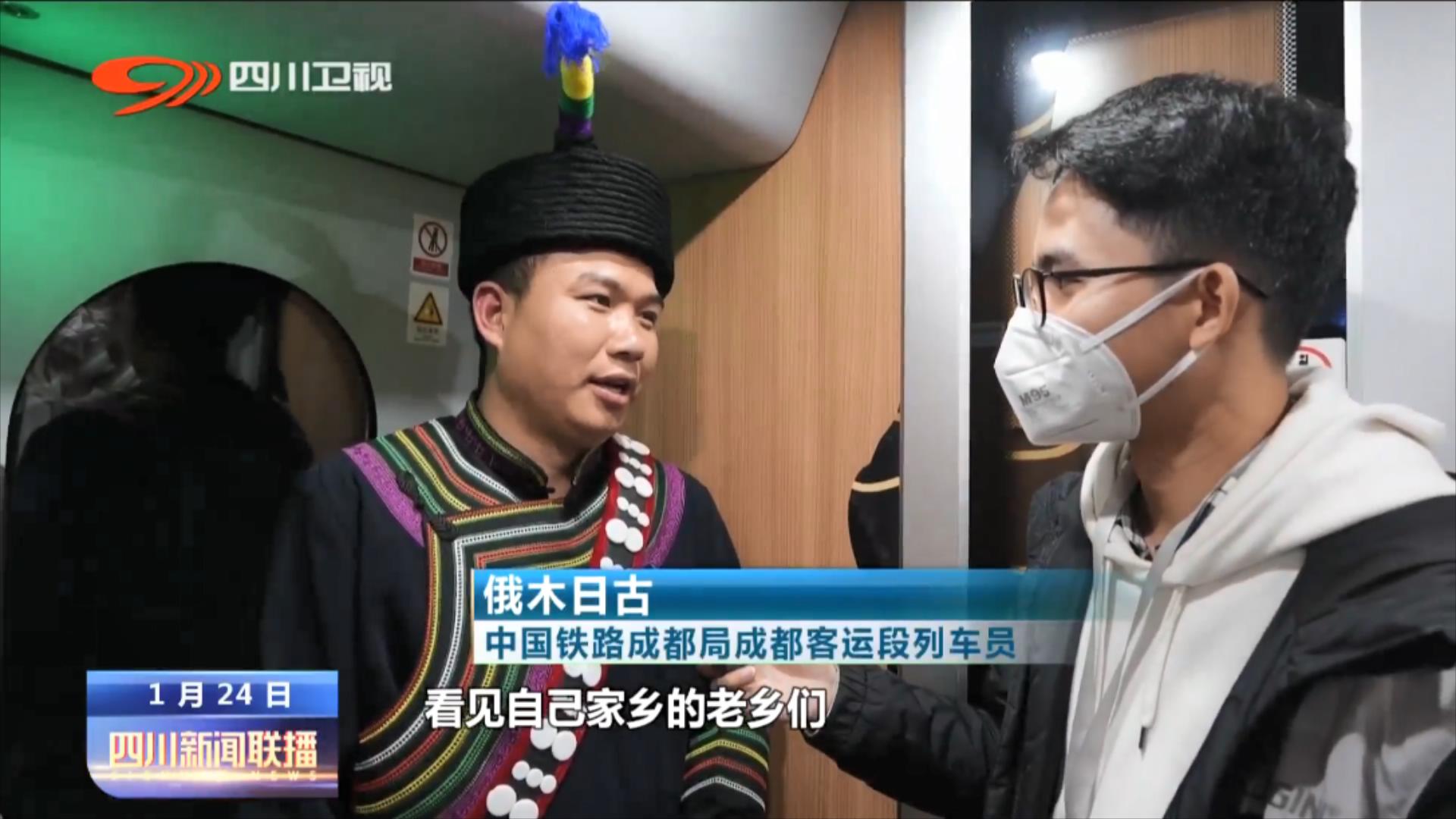 中国铁路成都局成都客运段列车员俄木日古:我们慢火车它会经过尼波、喜德、冕宁、西昌等27个站点,乘坐的都是沿线的老乡,他们会(乘坐5633次列车)把自己家里面的农作物、山货拿到西昌去售卖之后,会采购一些自己日常的生活用品,然后又乘坐我们的5634次列车回家。