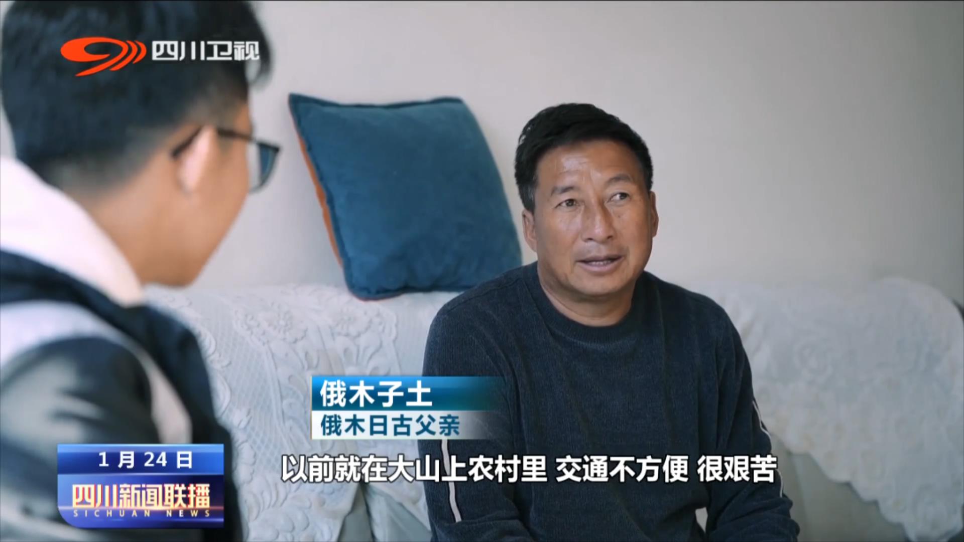 俄木日古父亲俄木子土: 以前就在大山上,交通不方便,很艰苦, (现在儿子)把我们带到城里来过这个城市生活,我们还是感到高兴。