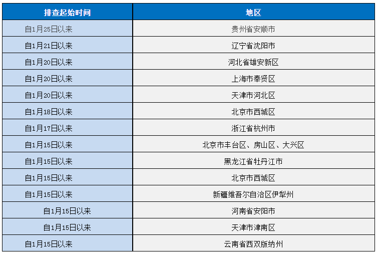 如果您近期有以下地区的旅居史,请第一时间向社区(村)、单位或入住酒店报备,配合做好各项疫情防控工作。