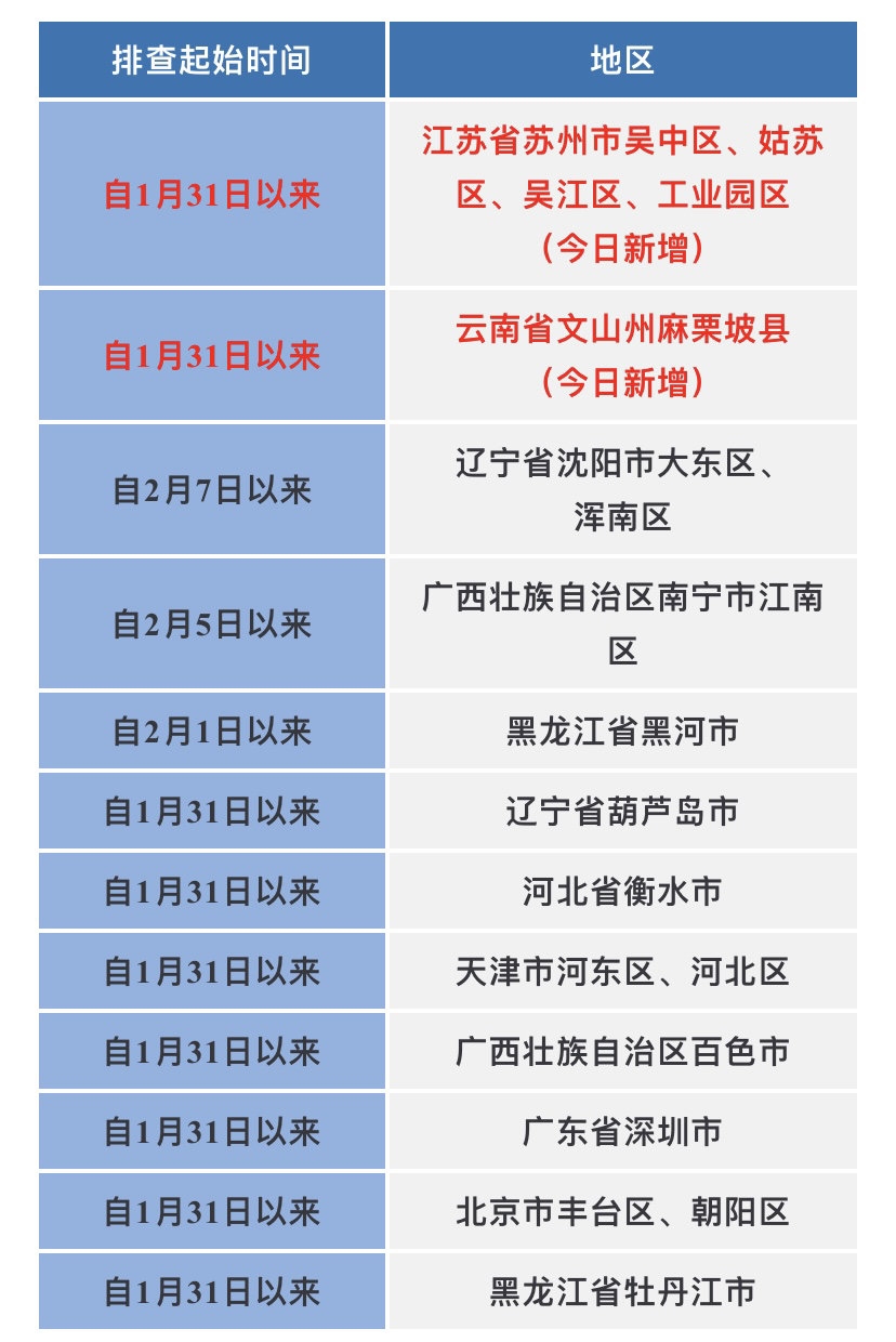 近期重点关注江苏省苏州市,辽宁省葫芦岛市,云南省文山州,广西壮族自治区百色市疫情。不前往高、中风险地区以及发生本土疫情的地区。