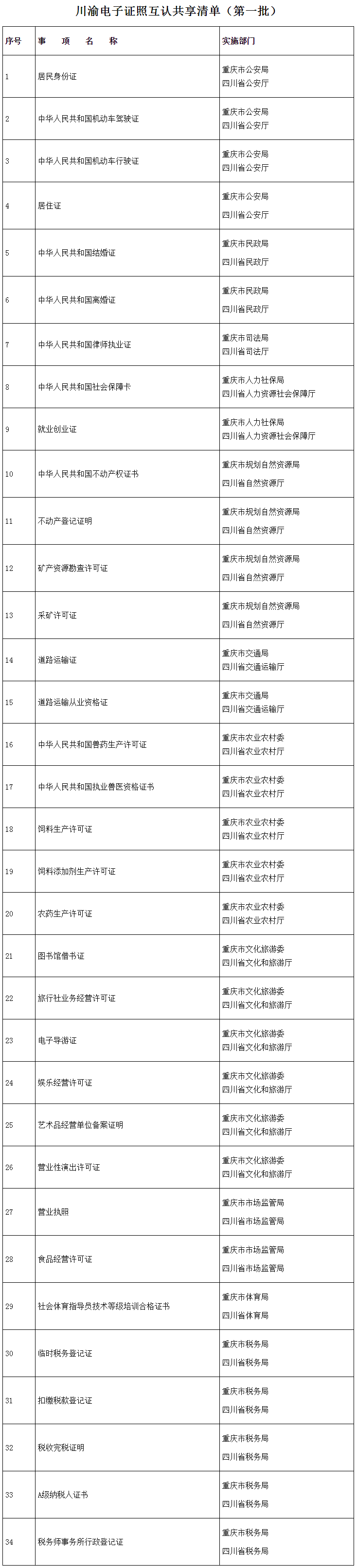 近日,四川省政府办公厅、重庆市政府办公厅联合印发了《成渝地区双城经济圈“放管服”改革2022年重点任务清单》《川渝通办事项清单(第三批)》《川渝电子证照互认共享清单(第一批)》。