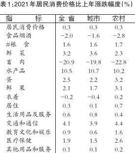 全年居民消费价格(CPI)比上年上涨0.3%,其中医疗保健类上涨1.9%,居住类上涨0.3%,教育文化和娱乐类上涨0.9%,食品烟酒类下跌2.0%。商品零售价格比上年上涨1.4%。工业生产者出厂价格(PPI)比上年上涨5.9%,其中生产资料价格上涨7.3%,生活资料价格上涨2.3%;工业生产者购进价格(IPI)比上年上涨7.5%。